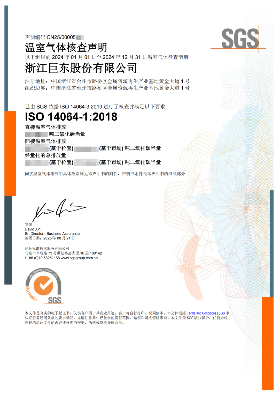 2025年2月獲2024年度路橋區制造業高質量發(fā)展先進企業 2025年2月獲省民營經濟總部企業 2025年2月獲生產制造方式轉型示范項目 2025年5月獲中國品牌價值評價結果通知書-品牌價值11億元 2025年8月獲溫室氣體核查聲明 2025年9月獲2024年有色金屬營收企業30強第21強